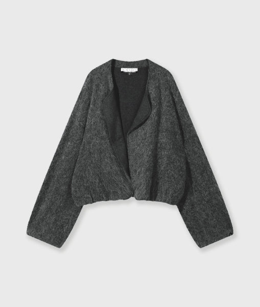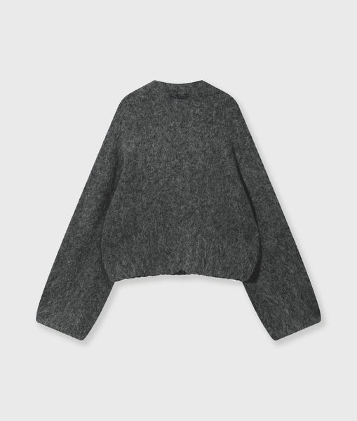 Oversized Fit Puffy Strickjacke in Ballonform aus einem weichem Alpaka-Woll-Mix und einem weichem Baumwollinnenfutter. Mit plissierten, elastischen Ärmeln und Saum, einem auf dem linken Ärmel aufgestickten „10“-Monogramm und einer „10“-Monogramm-Perle auf dem Rücken.
