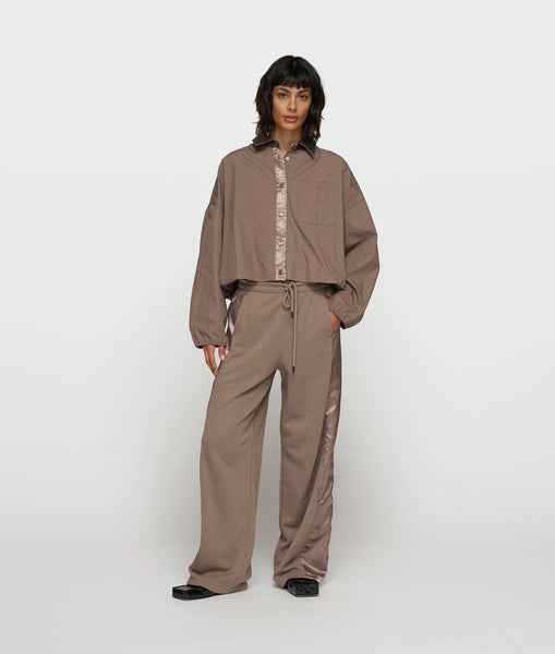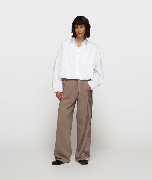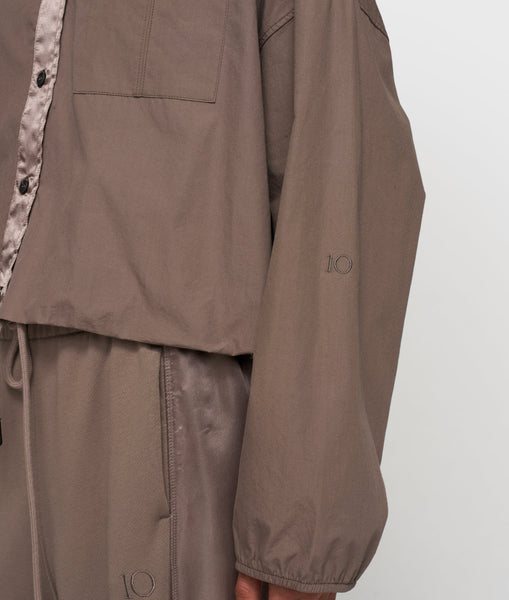 Relaxed Fit Cropped Blouse aus luftig-leichtem Baumwoll-Twill. Versehen mit einem Satinkragen und Knopfverschluss, einem elastischen Saum und elastischen Bündchen, einem weichen Baumwoll-Jerseyfutter, einer aufgenähten Brusttasche sowie einem aufgestickten „10“-Monogramm auf dem linken Ärmel.