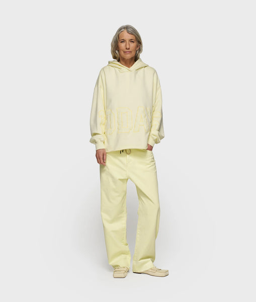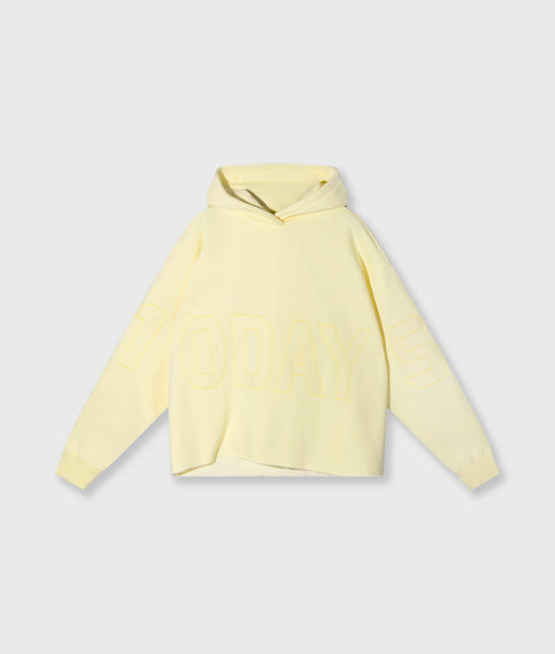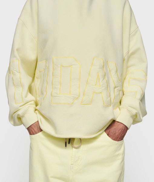 Relaxed Fit Statement Hoodie aus dichtem, gebürstetem Fleece. Das Sweatshirt ist an den Ärmeln und am Rumpf auf der Vorderseite mit einem großen 10DAYS-Logoaufnäher, einer Kapuze, Rippstrickbündchen und einem Raw-Edge-Saum ausgeführt.