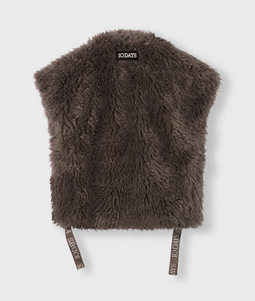 Regular Fit Hairy Gilet. Mit Rundhalsausschnitt, einem Haken- und Ösenverschluss, Eingrifftaschen, Baumwollbändern unterhalb der Seitennähte mit 10DAYS-Gummiaufdrucken und einem 10DAYS-Label auf der Rückseite.