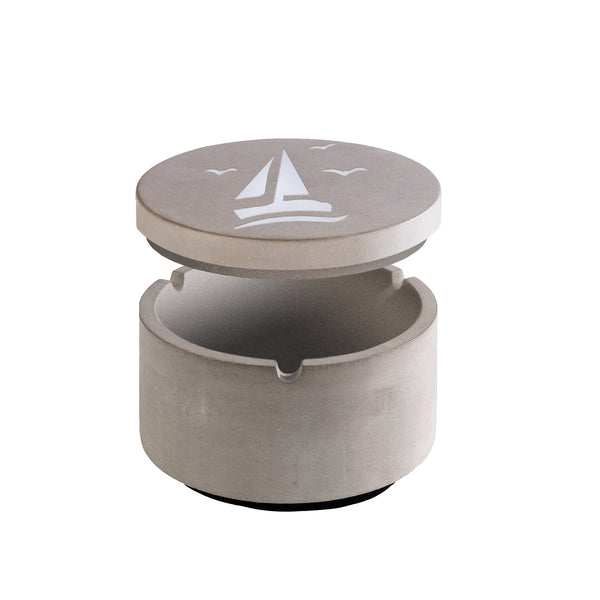 Der Aschenbecher aus Beton überzeugt durch seine schlichte, zeitlose Optik und die stabile Ausführung. Der passende Deckel sorgt für ein sauberes Erscheinungsbild und reduziert Geruchsbildung. Mit maritimen Motiven wie „Moin“, Anker oder Leuchtturm setzt dieses Modell stilvolle Akzente auf Balkon, Terrasse oder im Wohnbereich. Die natürliche Betonoberfläche unterstreicht den modernen, nordischen Charakter.