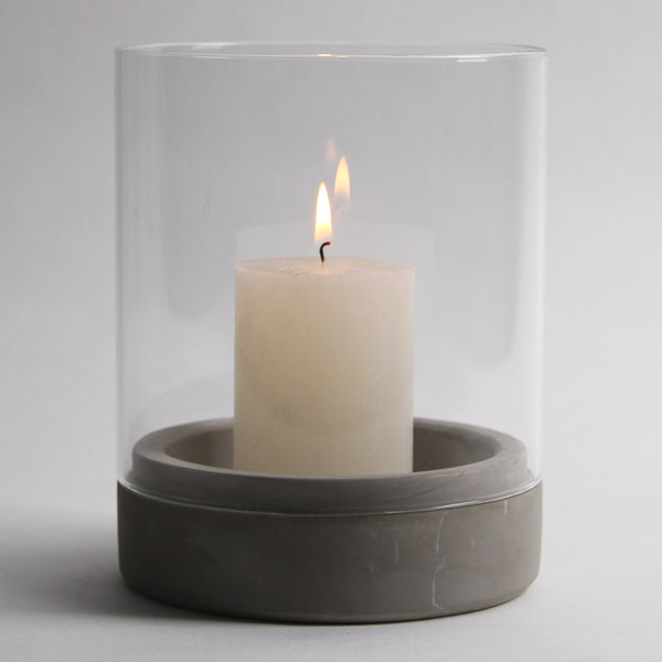 Windlicht mit Betonfuß und Glaszylinder